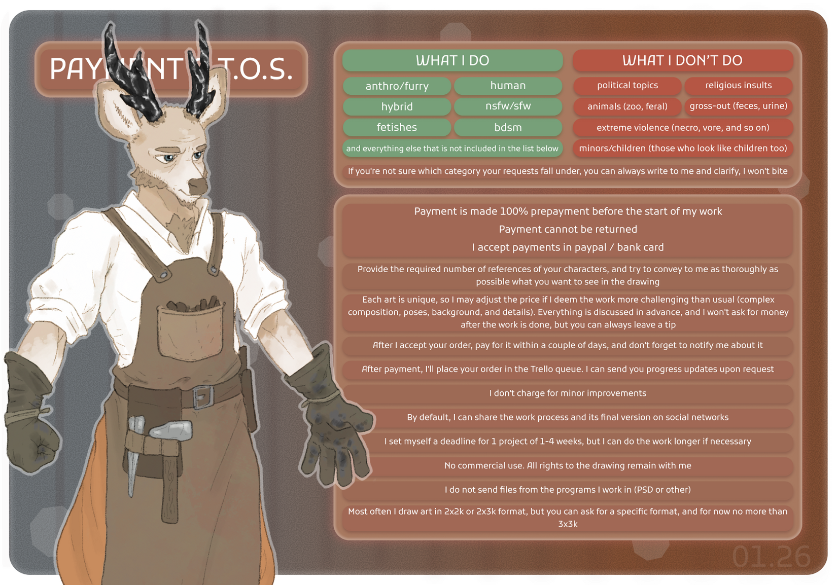 Hi! I have open commissions! Message me on Telegram or Discord, I'll respond there the fastest